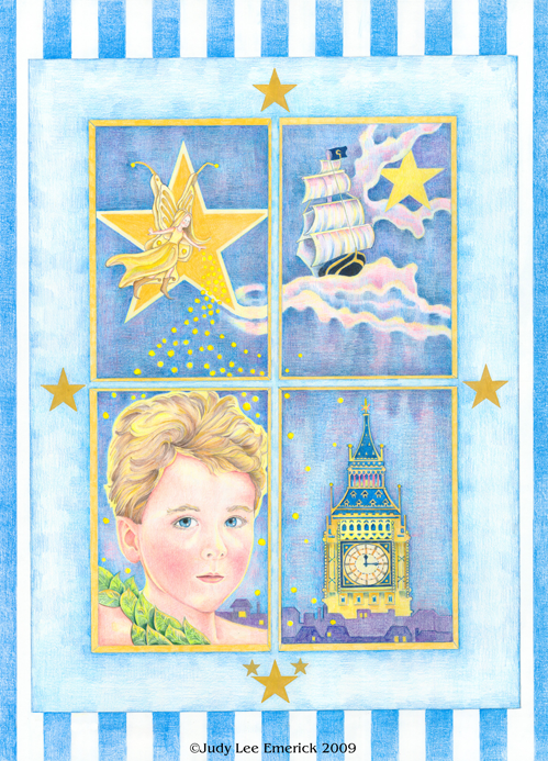this magical boy, Peter Pan, looking through the nursery window inviting us all to fly away to lands forgotten.